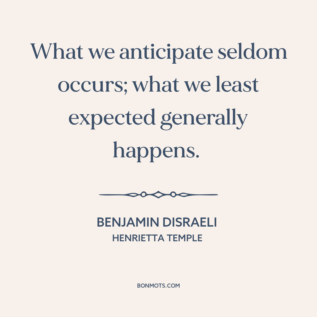 What we anticipate seldom occurs; what we least expected generally happens.
