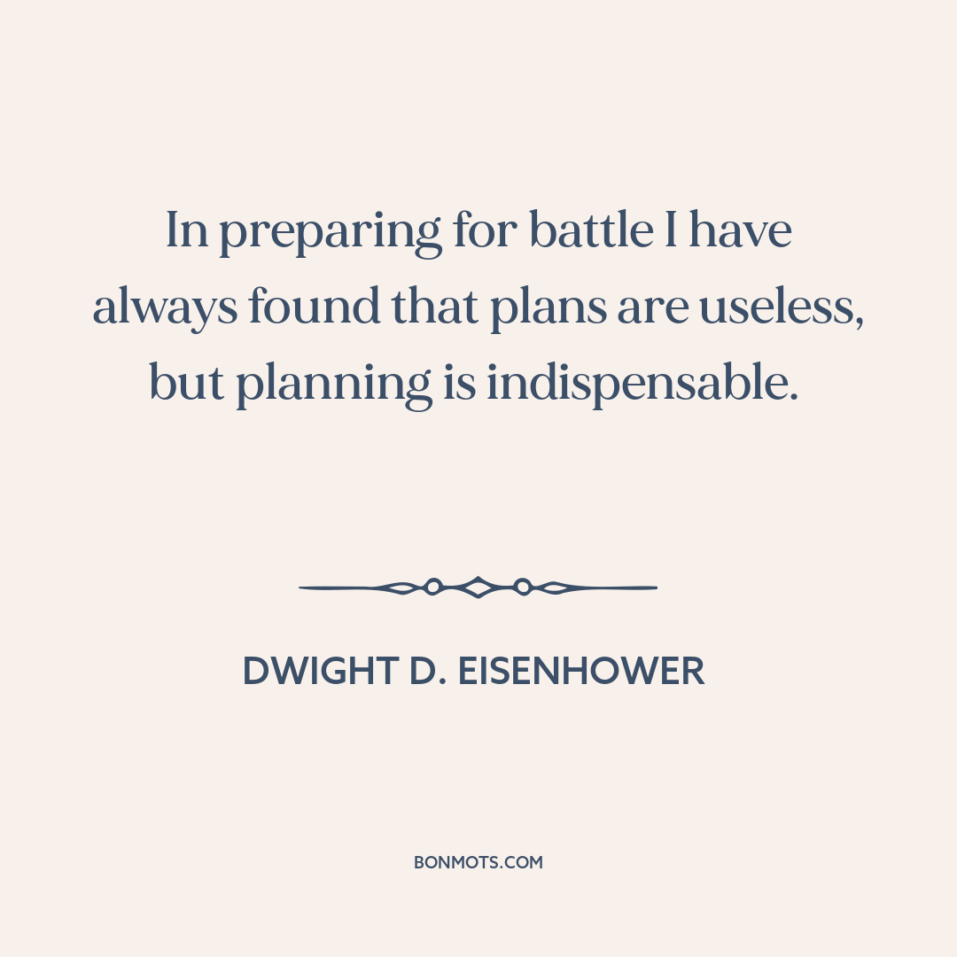 In preparing for battle I have always found that plans are useless, but planning is indispensable.
