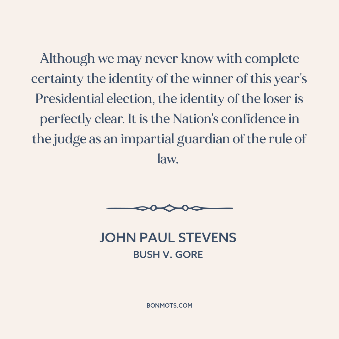 Although we may never know with complete certainty the identity of the winner of this year's Presidential election, the identity of the loser is perfectly clear. It is the Nation's confidence in the judge as an impartial guardian of the rule of law.
