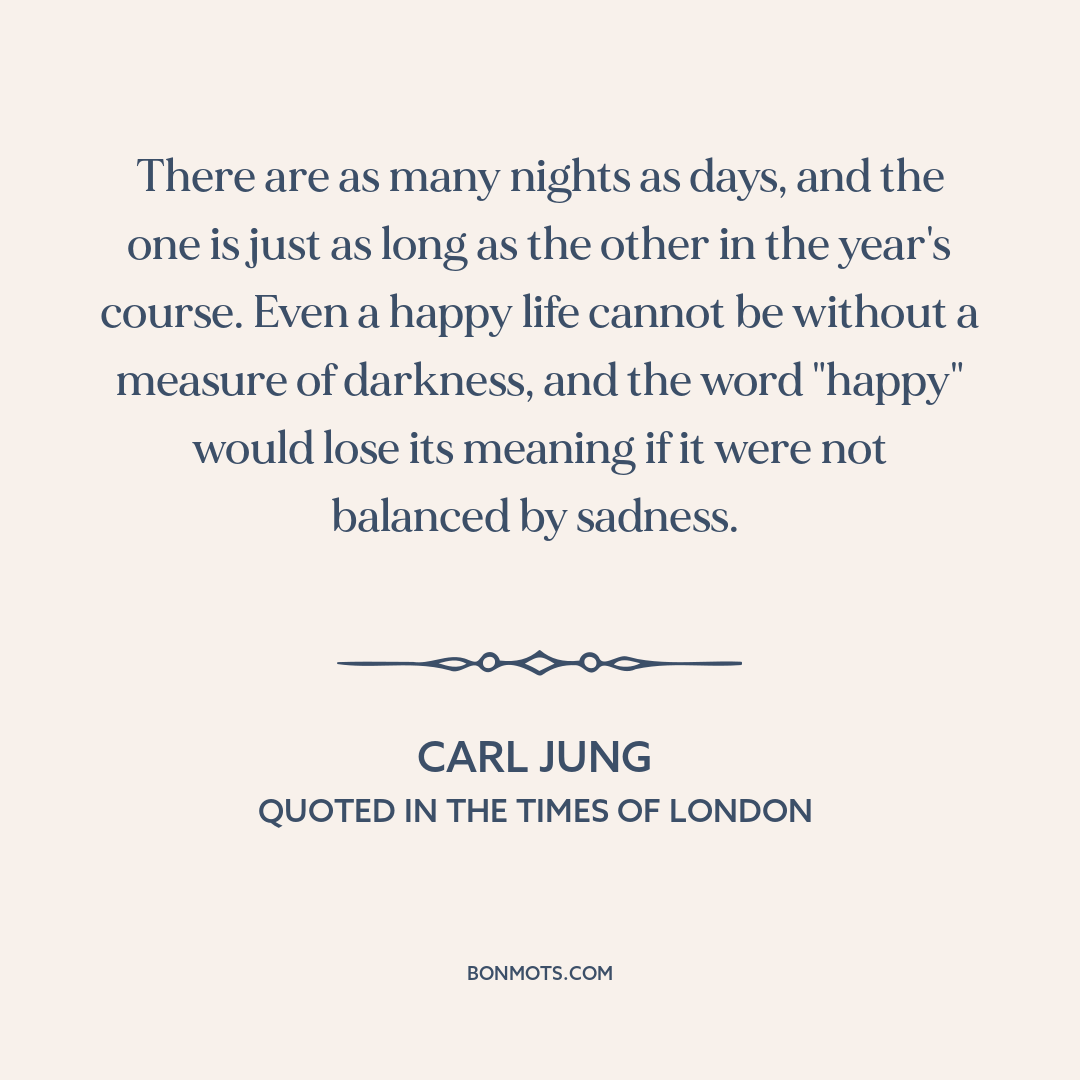 There are as many nights as days, and the one is just as long as the other in the year's course. Even a happy life cannot be without a measure of darkness, and the word "happy" would lose its meaning if it were not balanced by sadness.