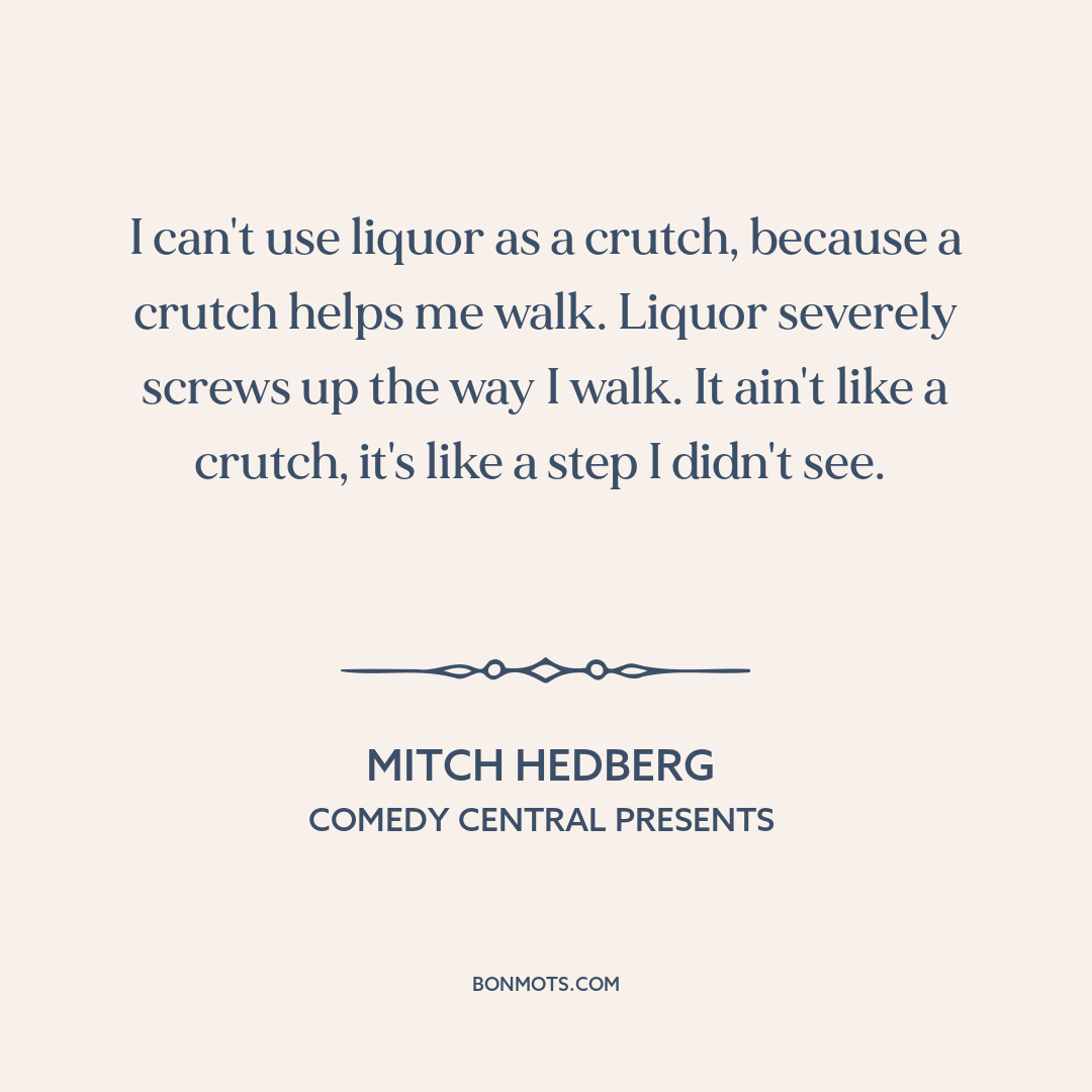 I can't use liquor as a crutch, because a crutch helps me walk. Liquor severely screws up the way I walk. It ain't like a crutch, it's like a step I didn't see.