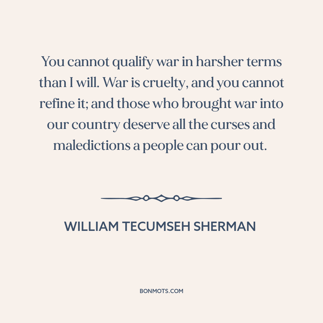 You cannot qualify war in harsher terms than I will. War is cruelty, and you cannot refine it; and those who brought war into our country deserve all the curses and maledictions a people can pour out.