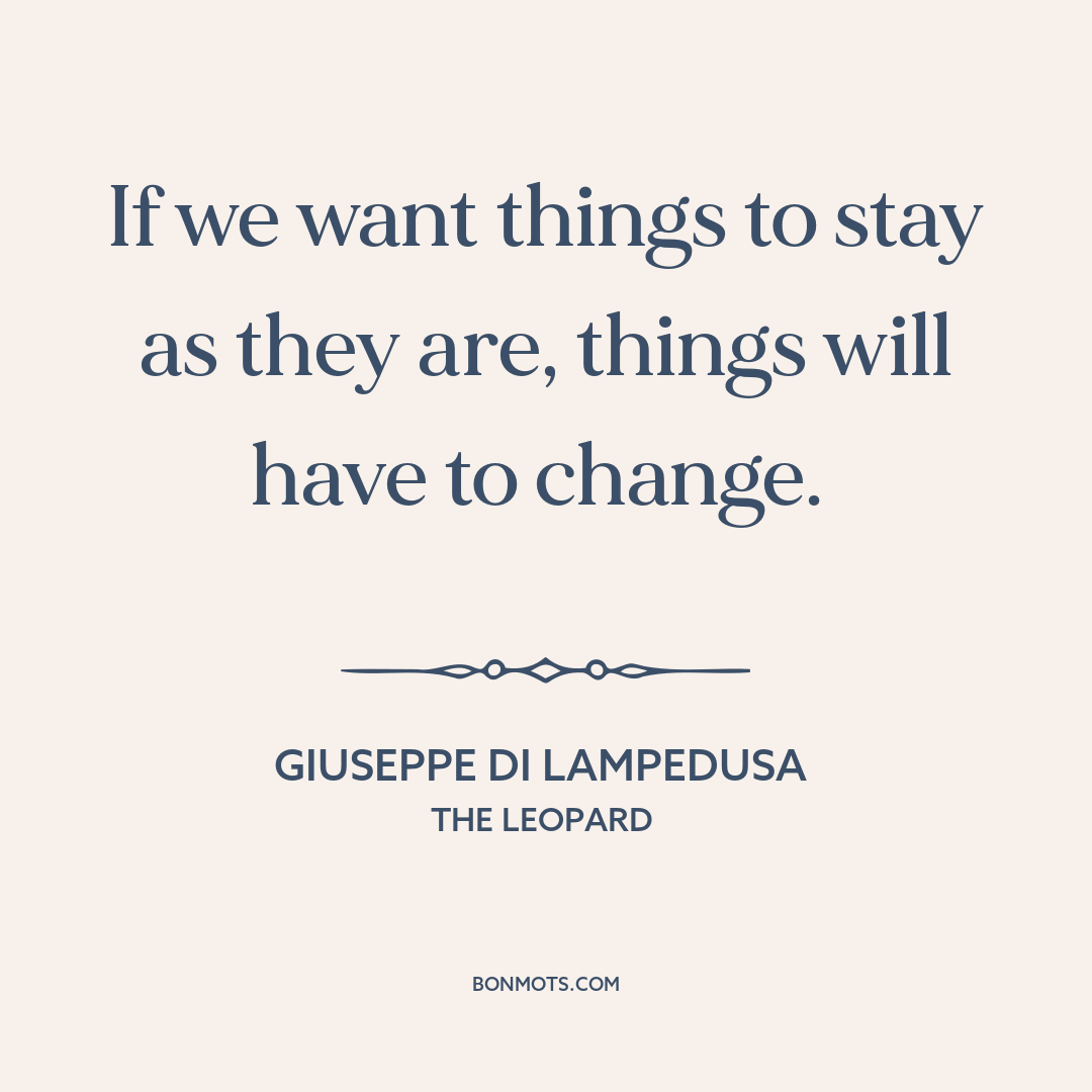 If we want things to stay as they are, things will have to change.