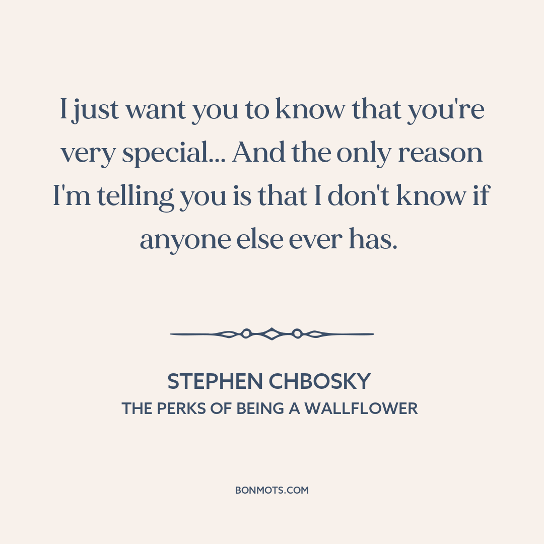 I just want you to know that you're very special... And the only reason I'm telling you is that I don't know if anyone else ever has.