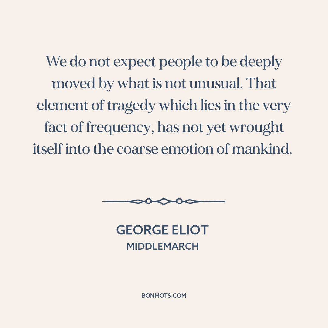 We do not expect people to be deeply moved by what is not unusual. That element of tragedy which lies in the very fact of frequency, has not yet wrought itself into the coarse emotion of mankind.