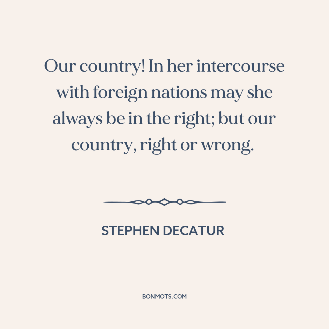 Our country! In her intercourse with foreign nations may she always be in the right; but our country, right or wrong.