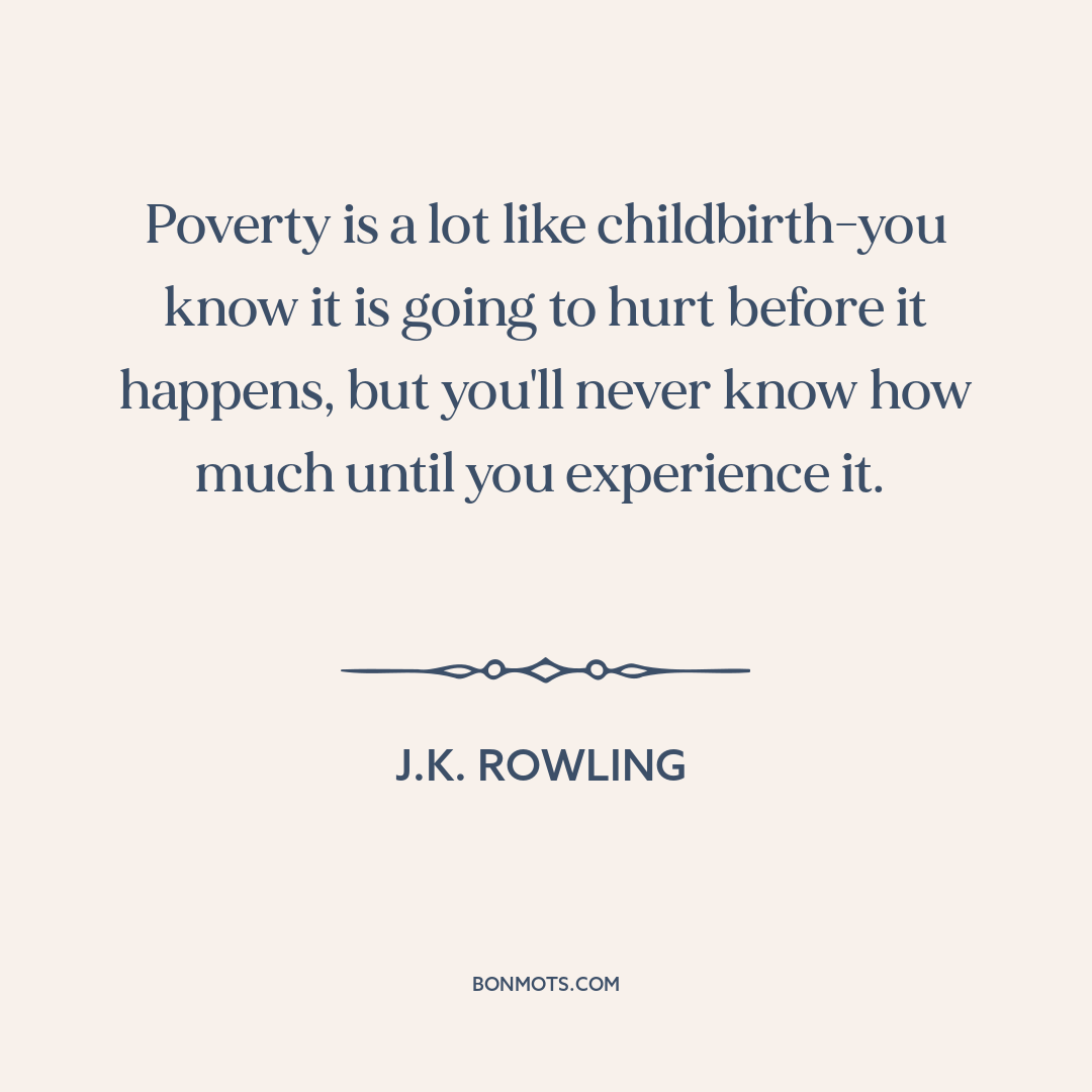 Poverty is a lot like childbirth-you know it is going to hurt before it happens, but you'll never know how much until you experience it.
