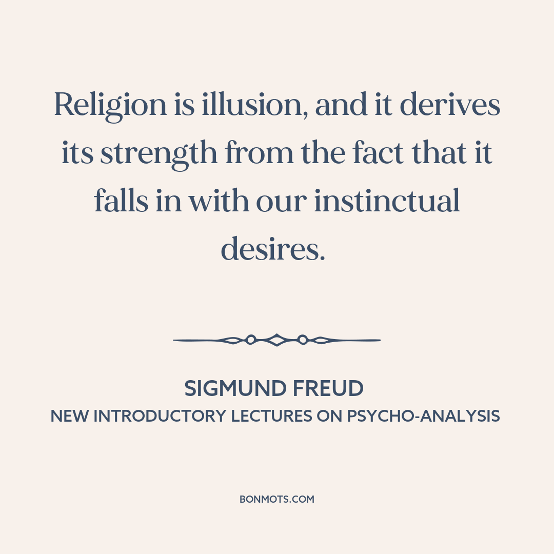 Religion is illusion, and it derives its strength from the fact that it falls in with our instinctual desires.
