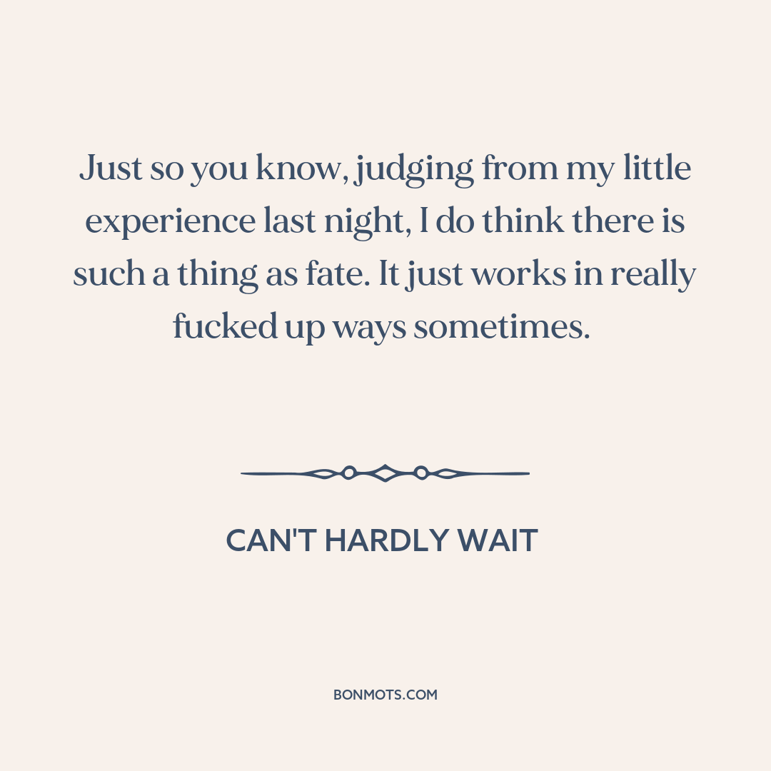 Just so you know, judging from my little experience last night, I do think there is such a thing as fate. It just works in really fucked up ways sometimes.