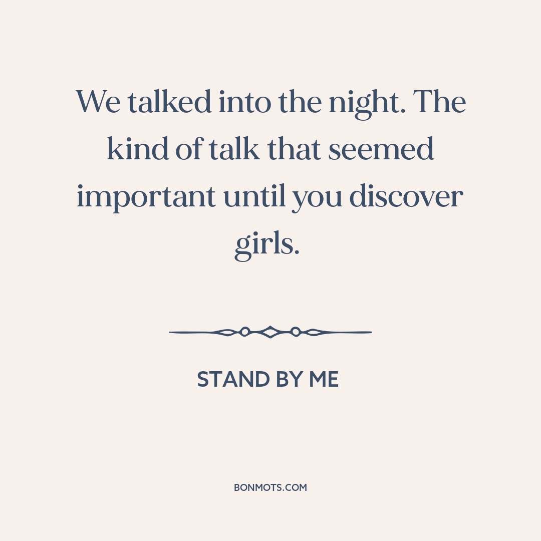 We talked into the night. The kind of talk that seemed important until you discover girls.