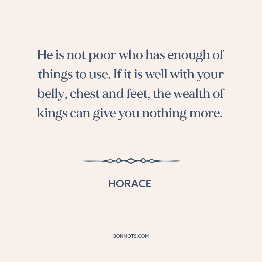 He is not poor who has enough of things to use. If it is well with your belly, chest and feet, the wealth of kings can give you nothing more.