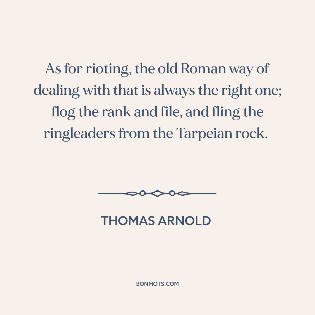 As for rioting, the old Roman way of dealing with that is always the right one; flog the rank and file, and fling the ringleaders from the Tarpeian rock.