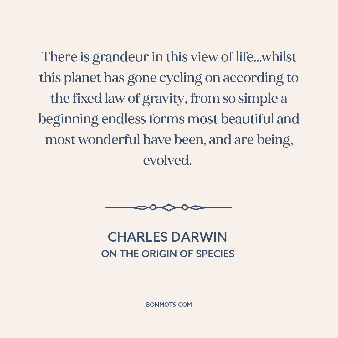 There is grandeur in this view of life...whilst this planet has gone cycling on according to the fixed law of gravity, from so simple a beginning endless forms most beautiful and most wonderful have been, and are being, evolved.