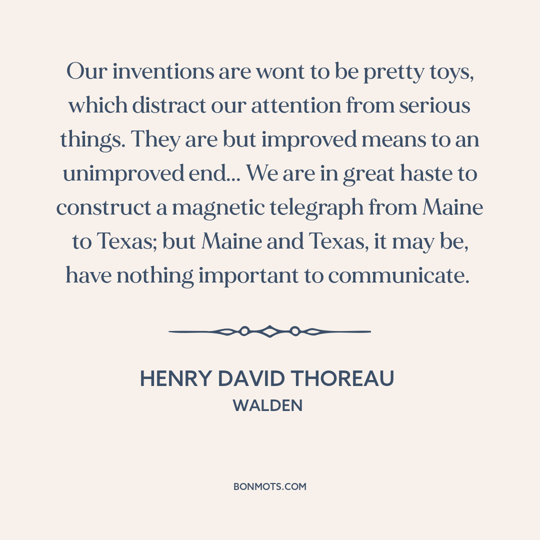 Our inventions are wont to be pretty toys, which distract our attention from serious things. They are but improved means to an unimproved end... We are in great haste to construct a magnetic telegraph from Maine to Texas; but Maine and Texas, it may be, have nothing important to communicate.
