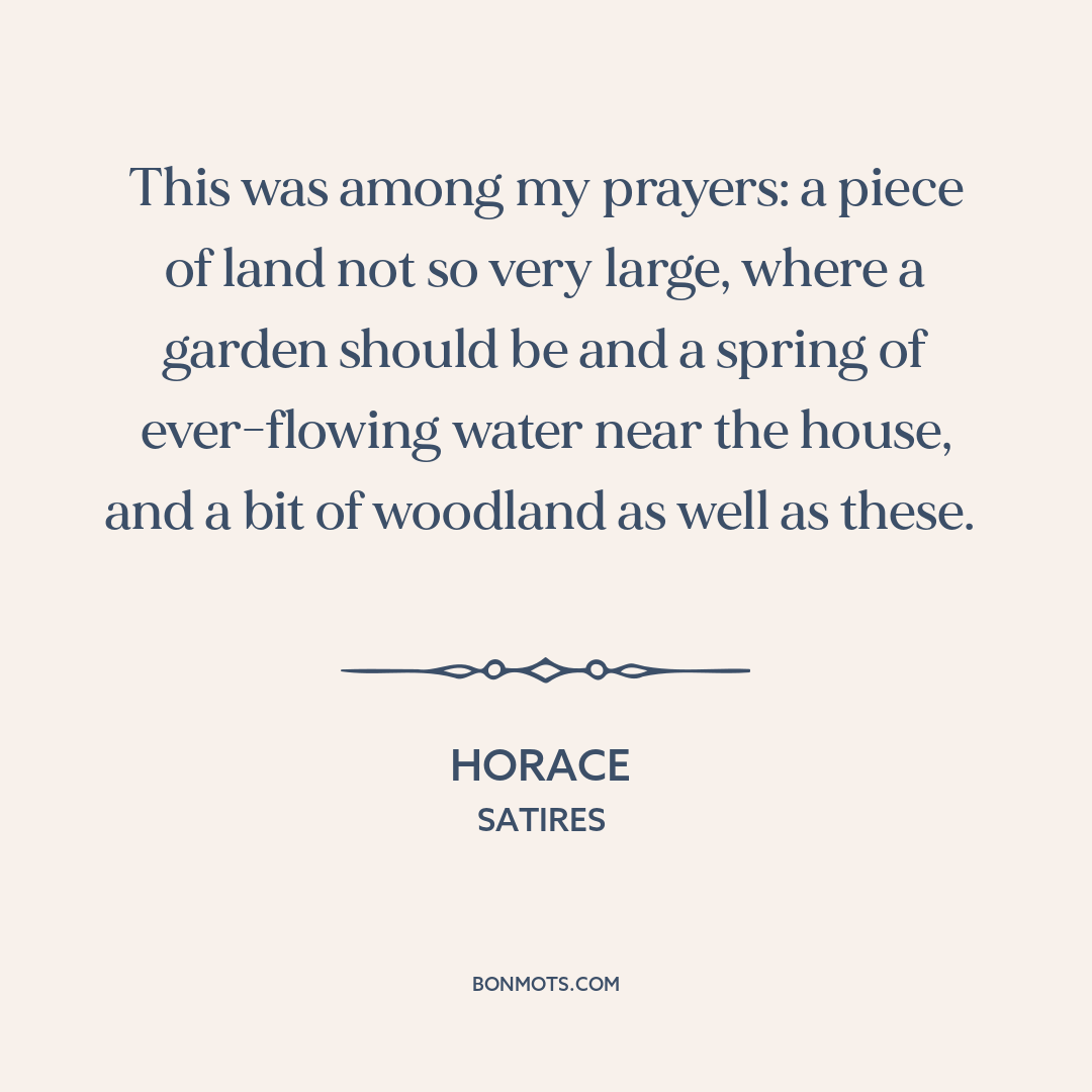 This was among my prayers: a piece of land not so very large, where a garden should be and a spring of ever-flowing water near the house, and a bit of woodland as well as these.