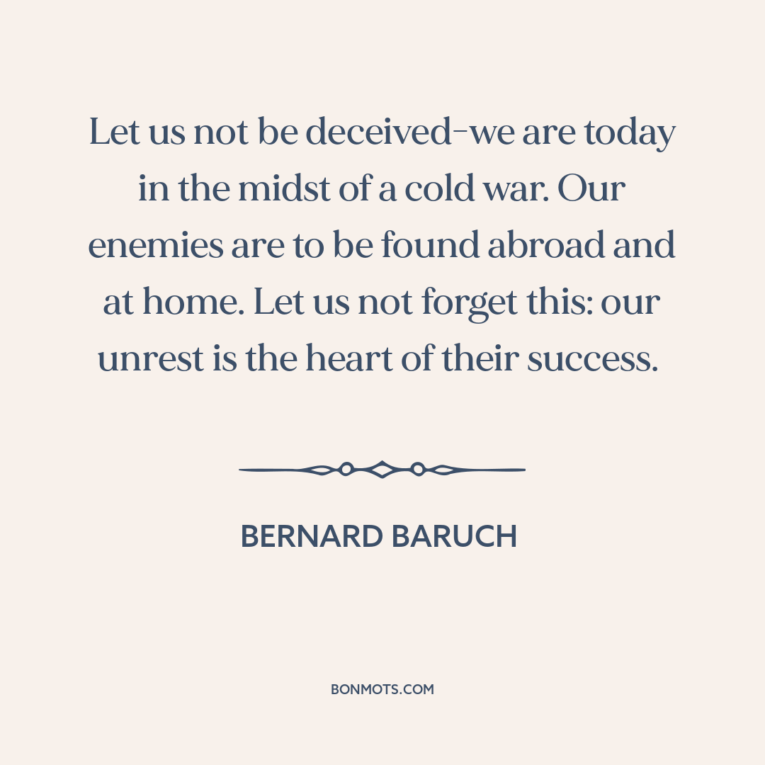 Let us not be deceived-we are today in the midst of a cold war. Our enemies are to be found abroad and at home. Let us not forget this: our unrest is the heart of their success.