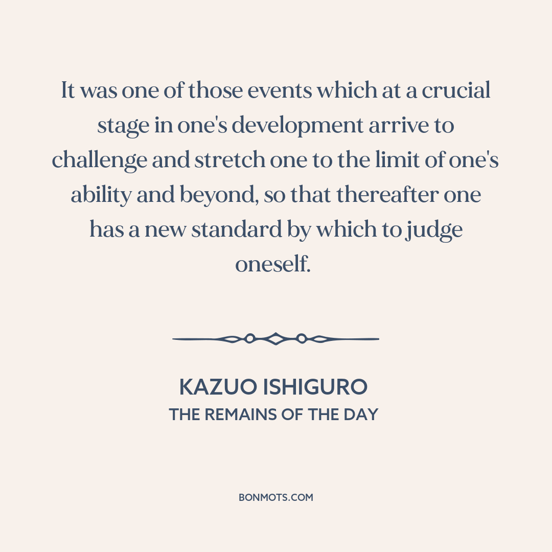 It was one of those events which at a crucial stage in one's development arrive to challenge and stretch one to the limit of one's ability and beyond, so that thereafter one has a new standard by which to judge oneself.