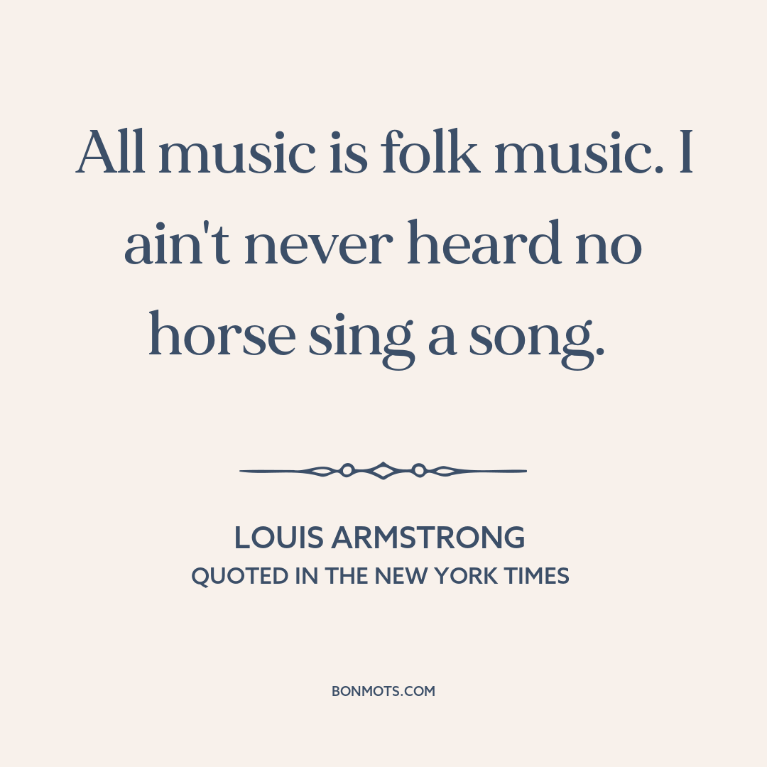 Armstrong, Louis. Quoted in "Louis Armstrong, Jazz Trumpeter and Singer, Dies." Written by Alvin Krebs. The New York Times, 7 July 1971.