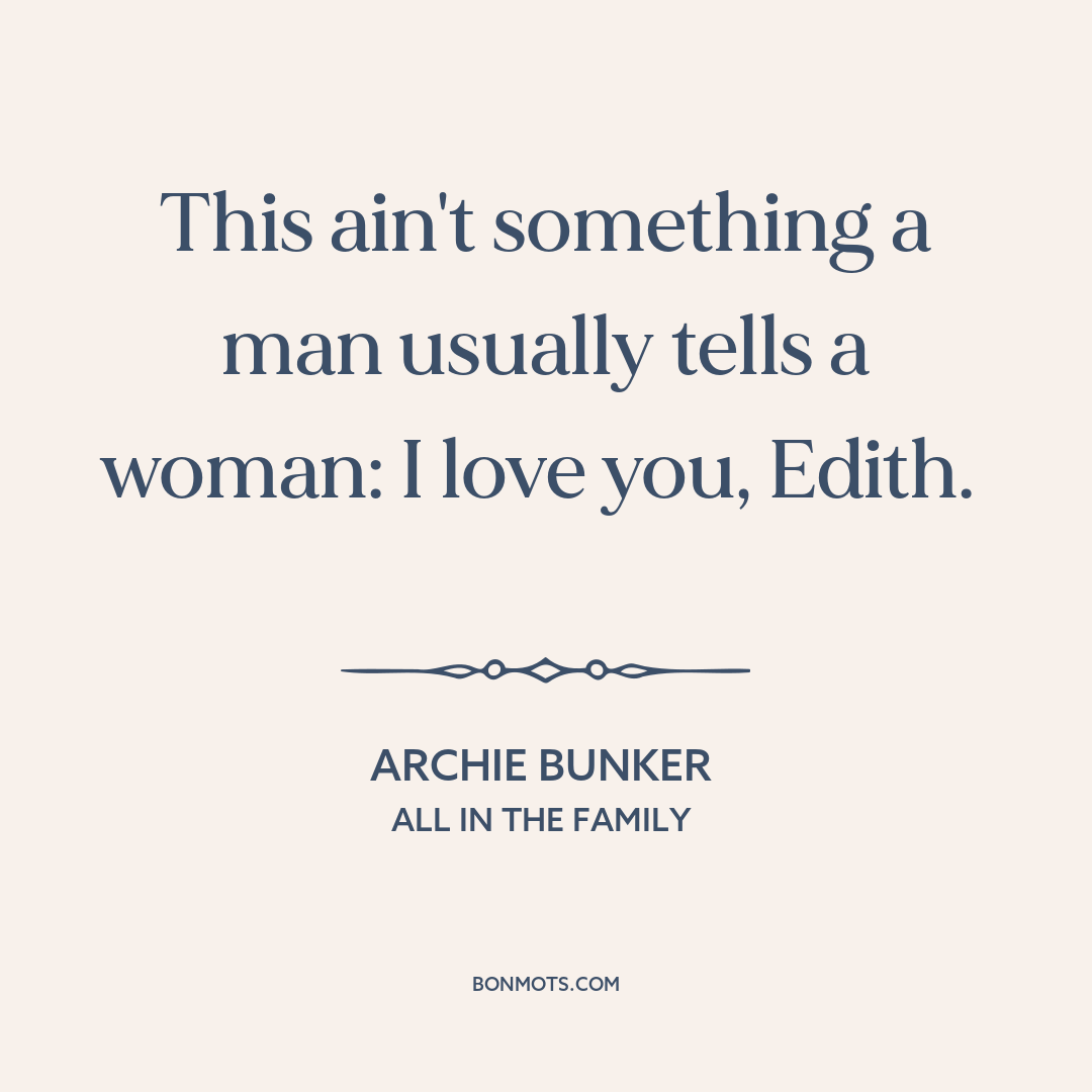 This ain't something a man usually tells a woman: I love you, Edith.
