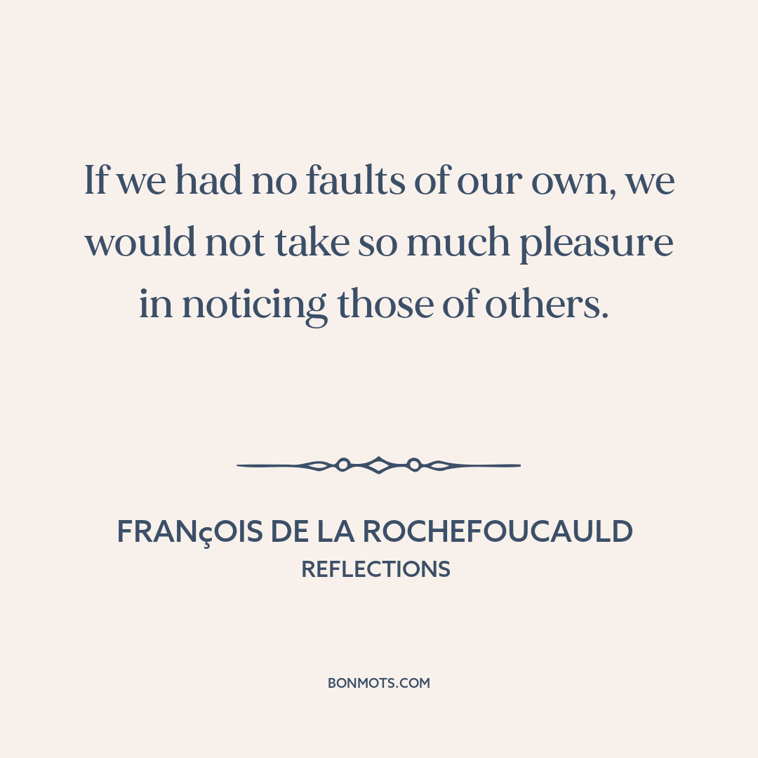 If we had no faults of our own, we would not take so much pleasure in noticing those of others.