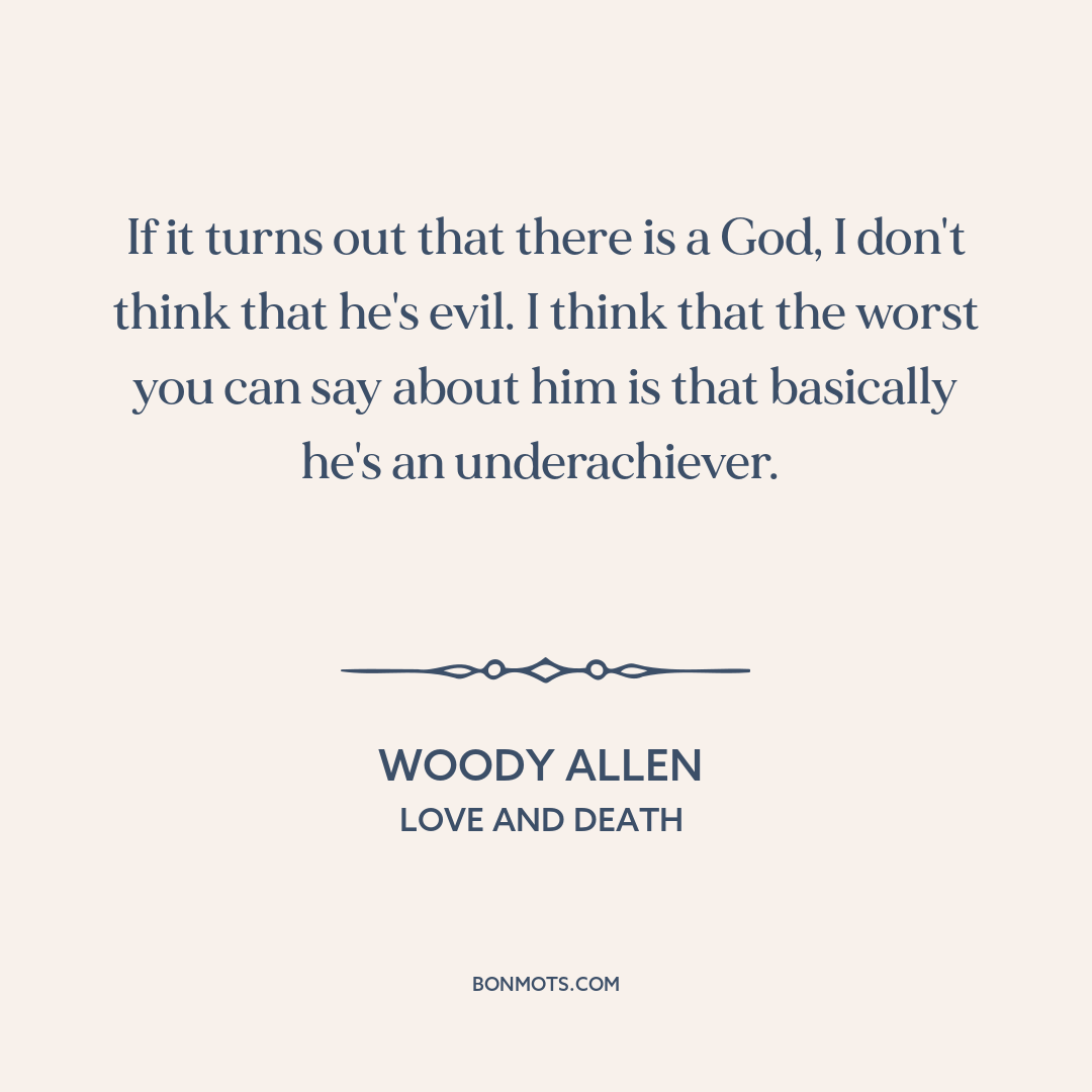 If it turns out that there is a God, I don't think that he's evil. I think that the worst you can say about him is that basically he's an underachiever.