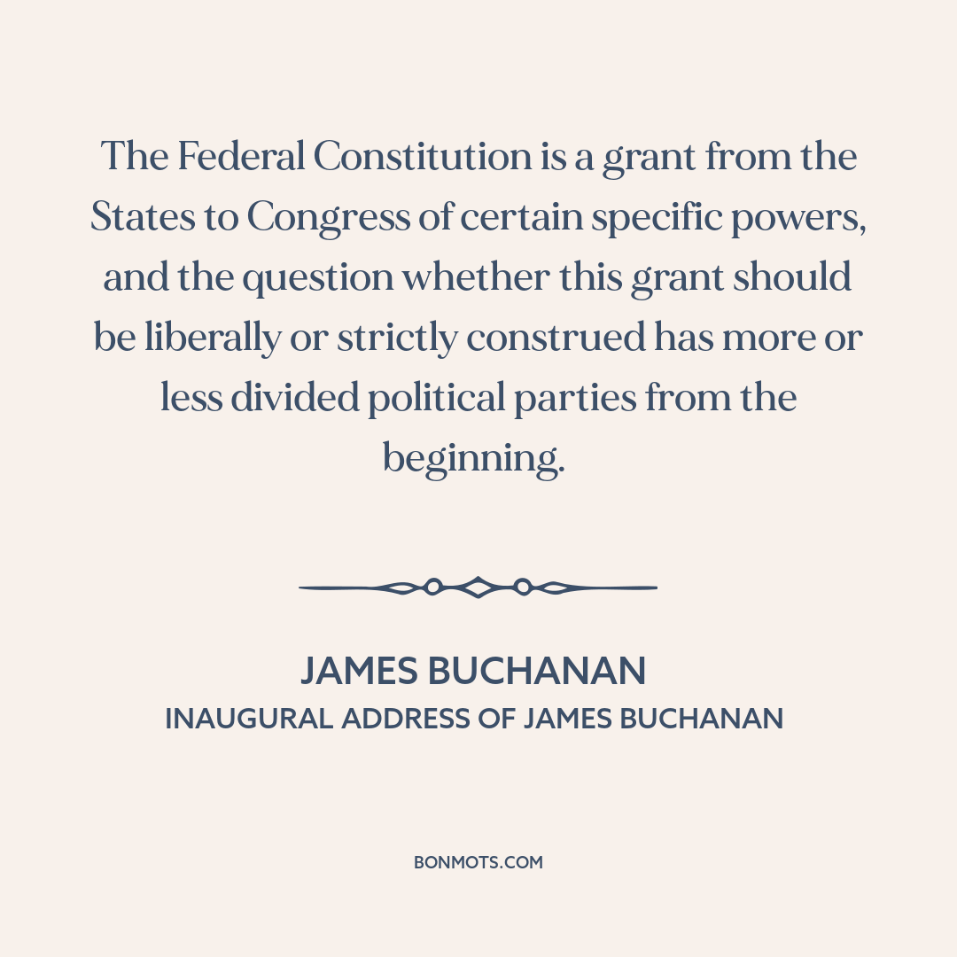 The Federal Constitution is a grant from the States to Congress of certain specific powers, and the question whether this grant should be liberally or strictly construed has more or less divided political parties from the beginning.