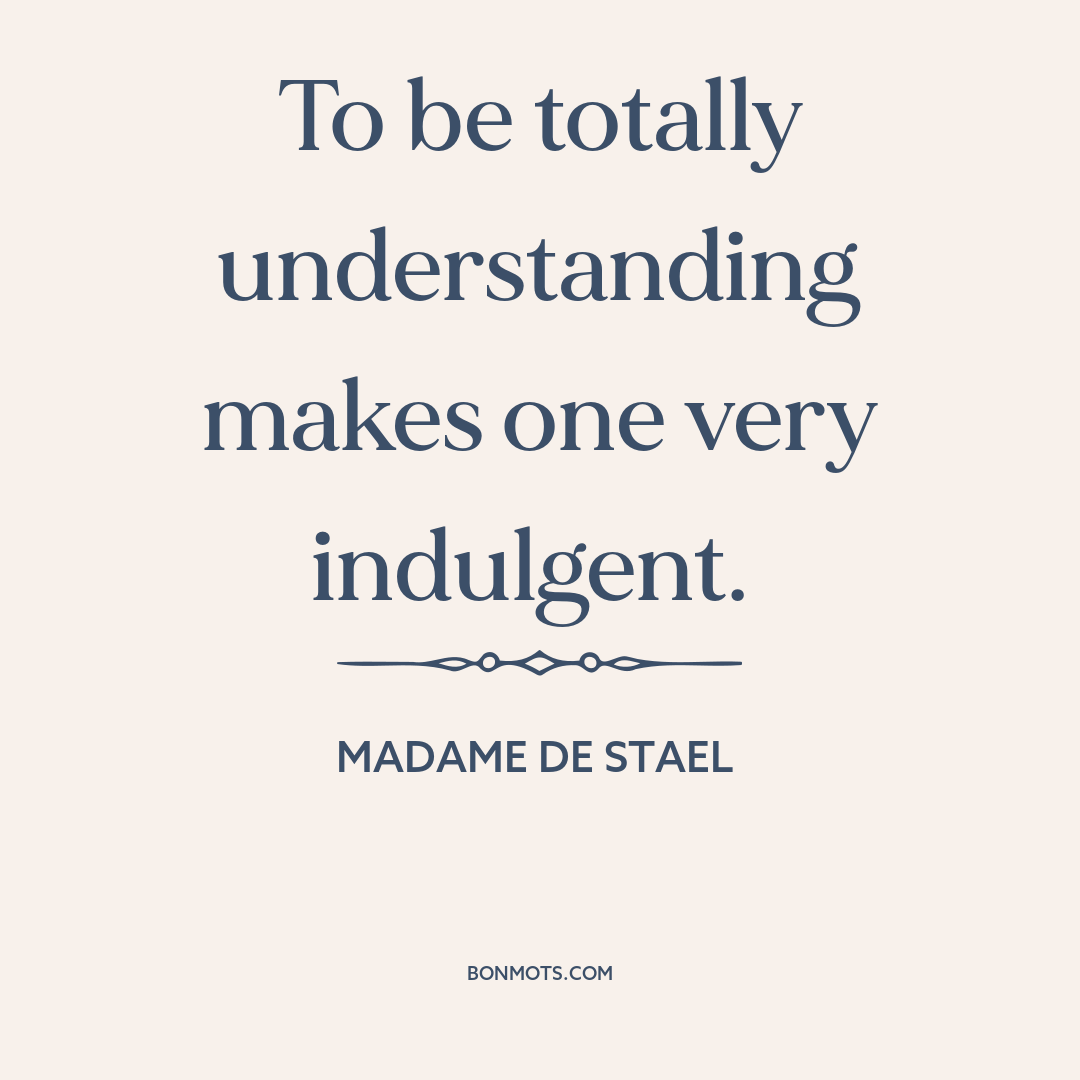 To be totally understanding makes one very indulgent.