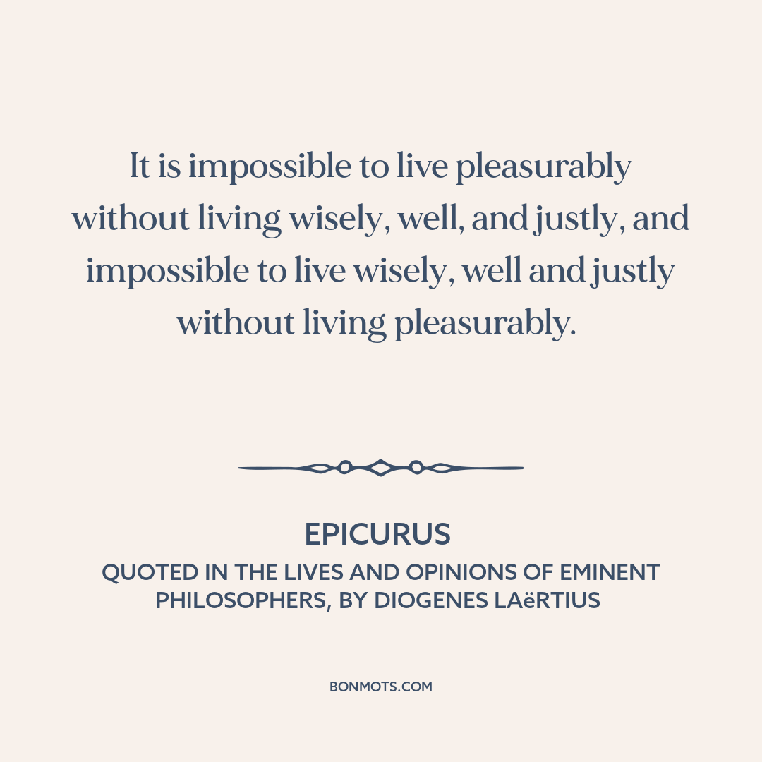 It is impossible to live pleasurably without living wisely, well, and justly, and impossible to live wisely, well and justly without living pleasurably.