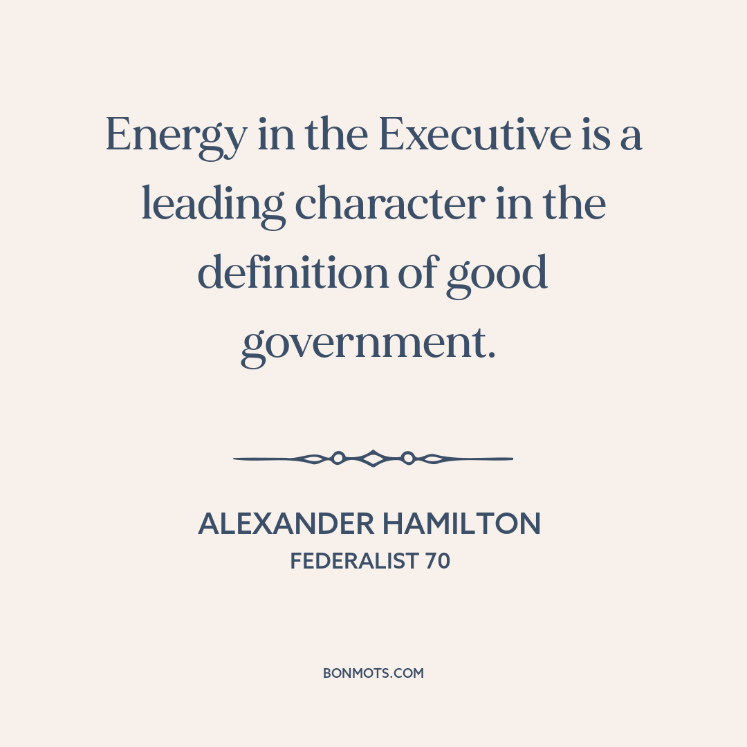 Hamilton, Alexander. "No. 70: Energy in the executive. First ingredient: Unity.--Hamilton." The Federalist: A Commentary on the Constitution of the United States, edited by Robert Scigliano. The Modern Library, 2001.