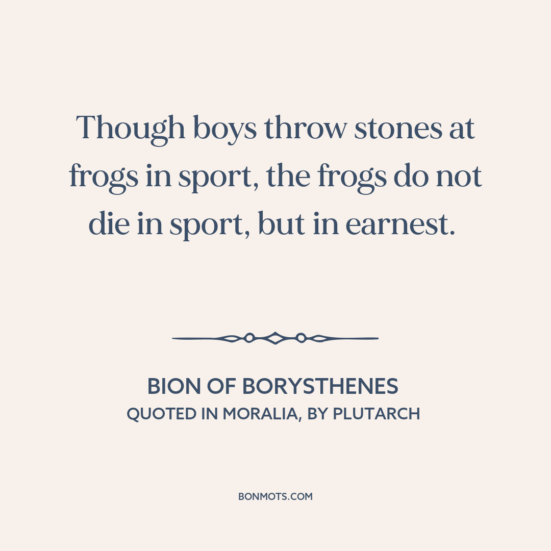 Though boys throw stones at frogs in sport, the frogs do not die in sport, but in earnest.