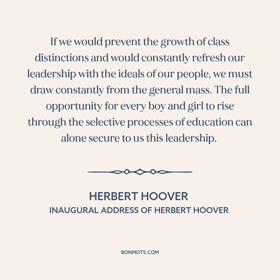 If we would prevent the growth of class distinctions and would constantly refresh our leadership with the ideals of our people, we must draw constantly from the general mass. The full opportunity for every boy and girl to rise through the selective processes of education can alone secure to us this leadership.