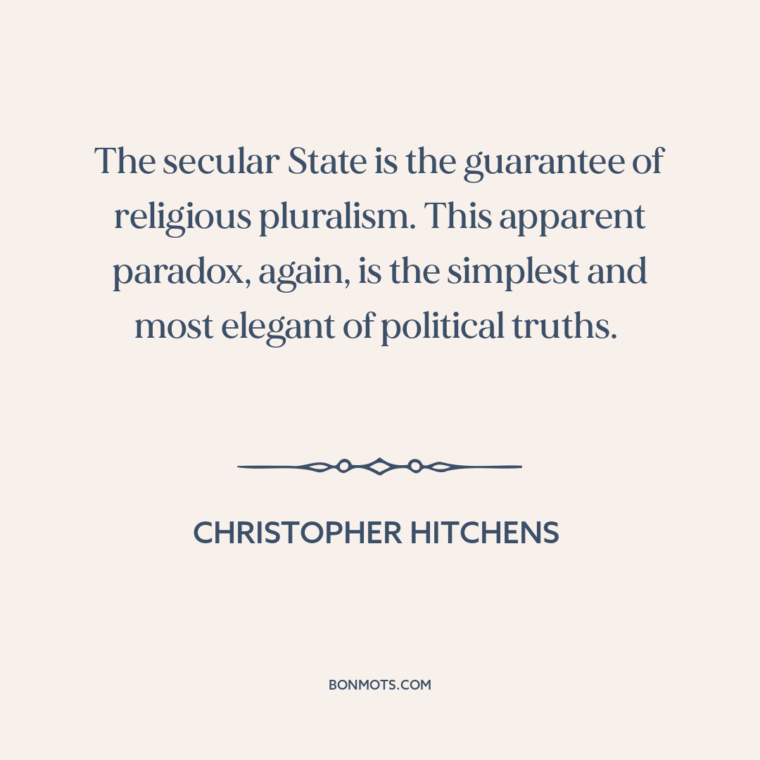 The secular State is the guarantee of religious pluralism. This apparent paradox, again, is the simplest and most elegant of political truths.