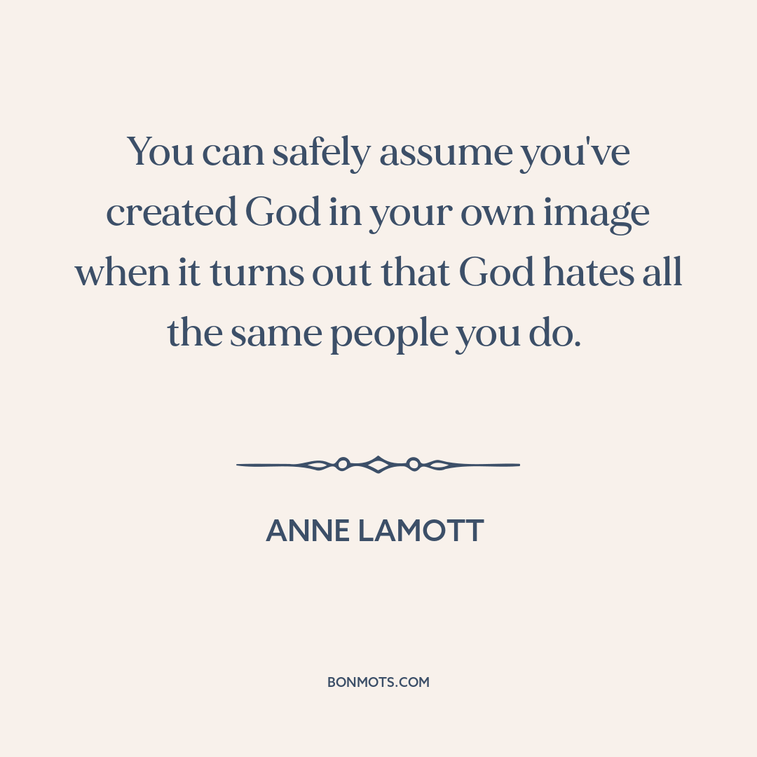 You can safely assume you've created God in your own image when it turns out that God hates all the same people you do.