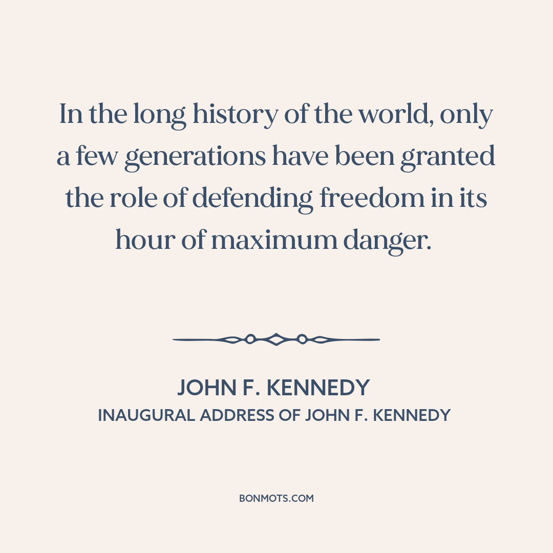 In the long history of the world, only a few generations have been granted the role of defending freedom in its hour of maximum danger.