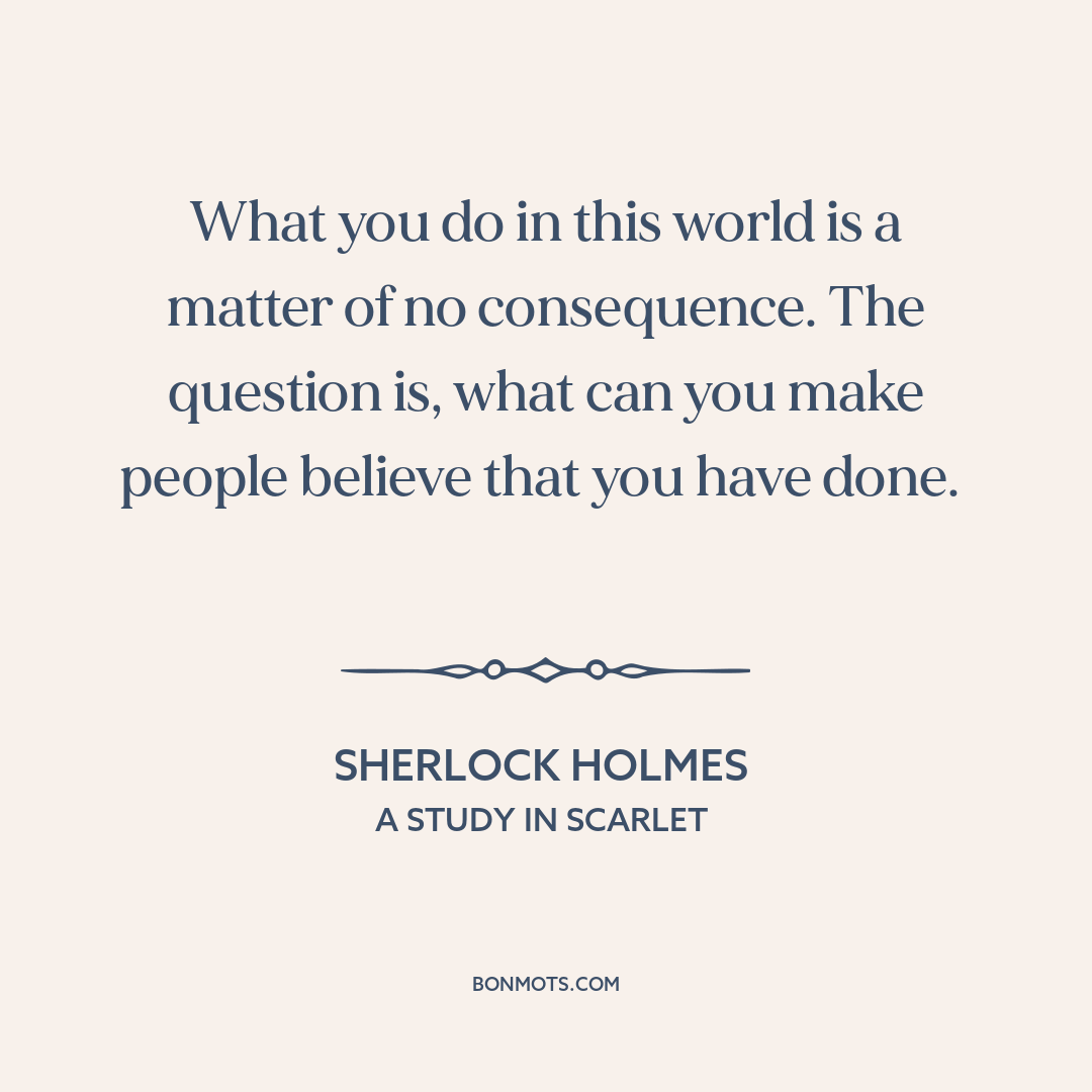 What you do in this world is a matter of no consequence. The question is, what can you make people believe that you have done.