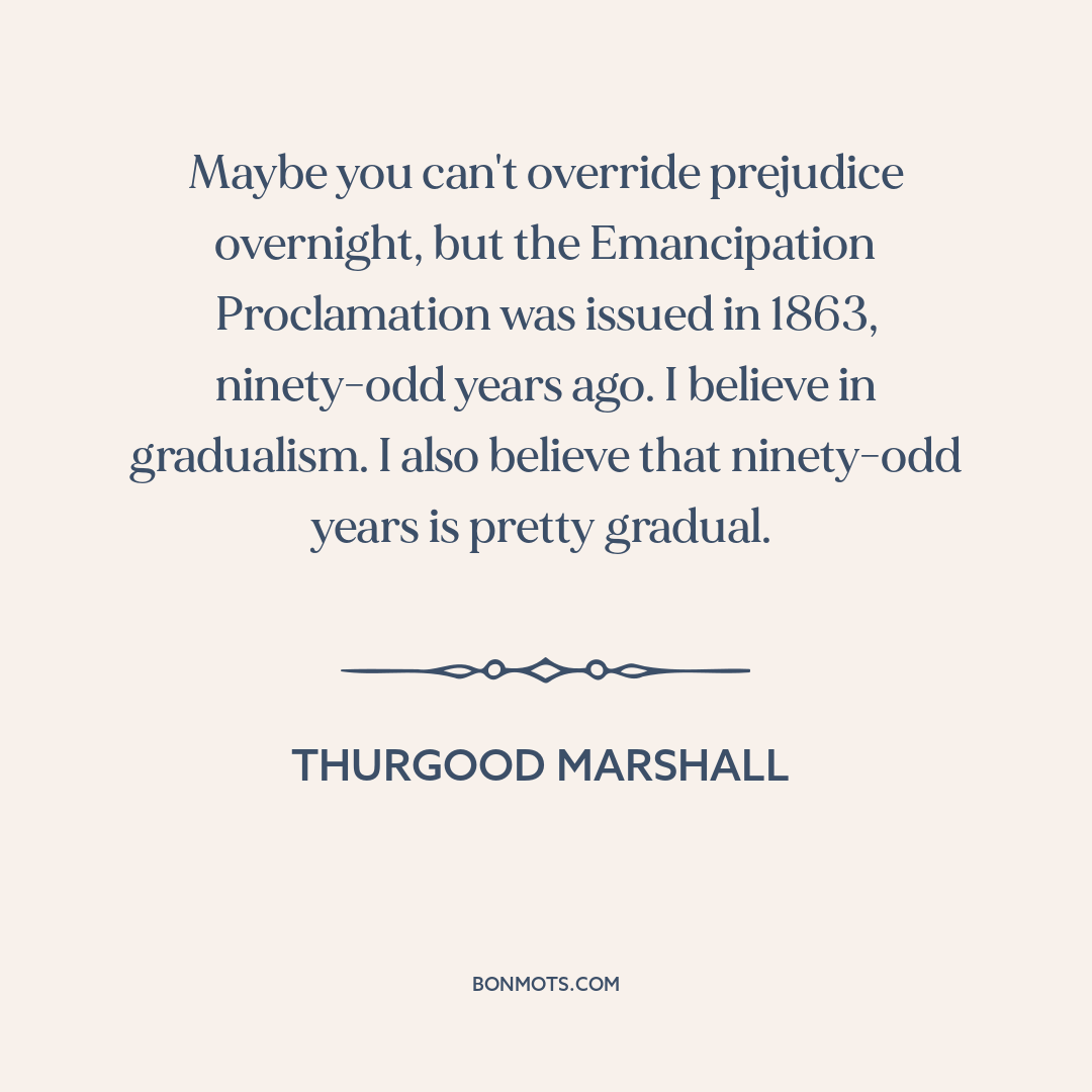 Maybe you can't override prejudice overnight, but the Emancipation Proclamation was issued in 1863, ninety-odd years ago. I believe in gradualism. I also believe that ninety-odd years is pretty gradual.