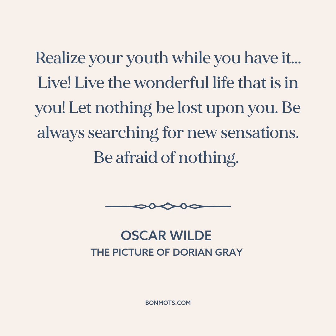 Realize your youth while you have it... Live! Live the wonderful life that is in you! Let nothing be lost upon you. Be always searching for new sensations. Be afraid of nothing.