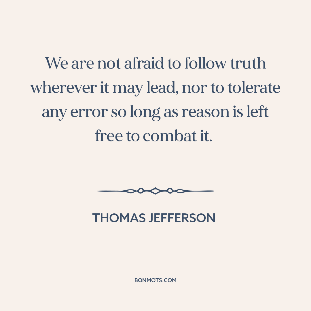 We are not afraid to follow truth wherever it may lead, nor to tolerate any error so long as reason is left free to combat it.