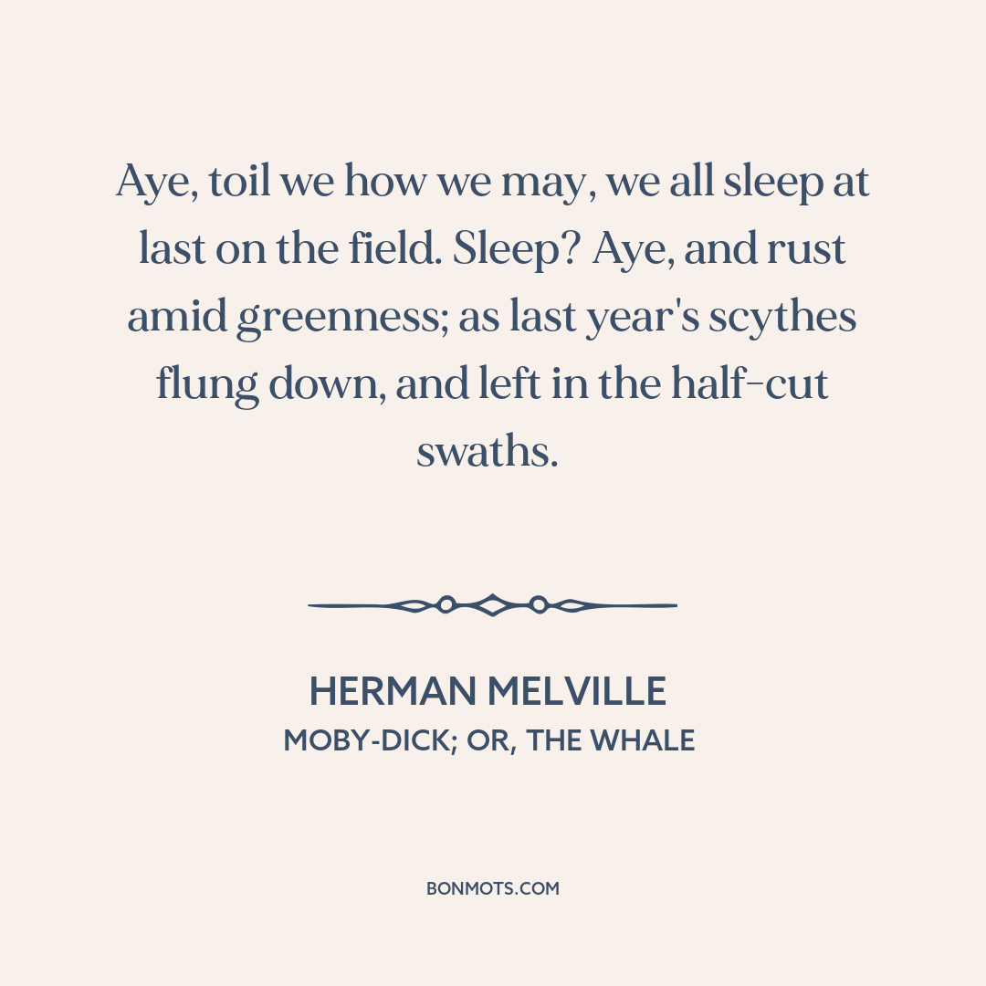 Aye, toil we how we may, we all sleep at last on the field. Sleep? Aye, and rust amid greenness; as last year's scythes flung down, and left in the half-cut swaths.