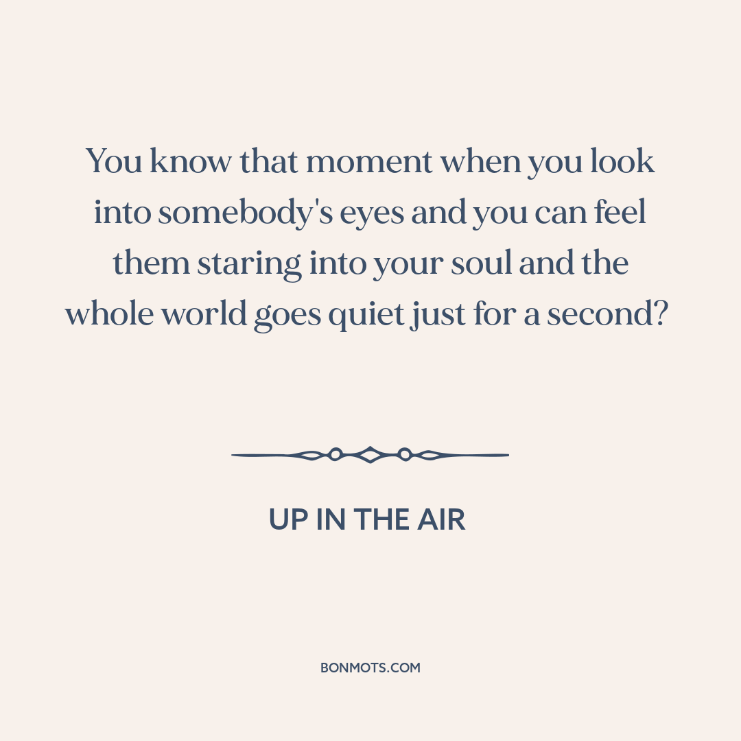 You know that moment when you look into somebody's eyes and you can feel them staring into your soul and the whole world goes quiet just for a second?