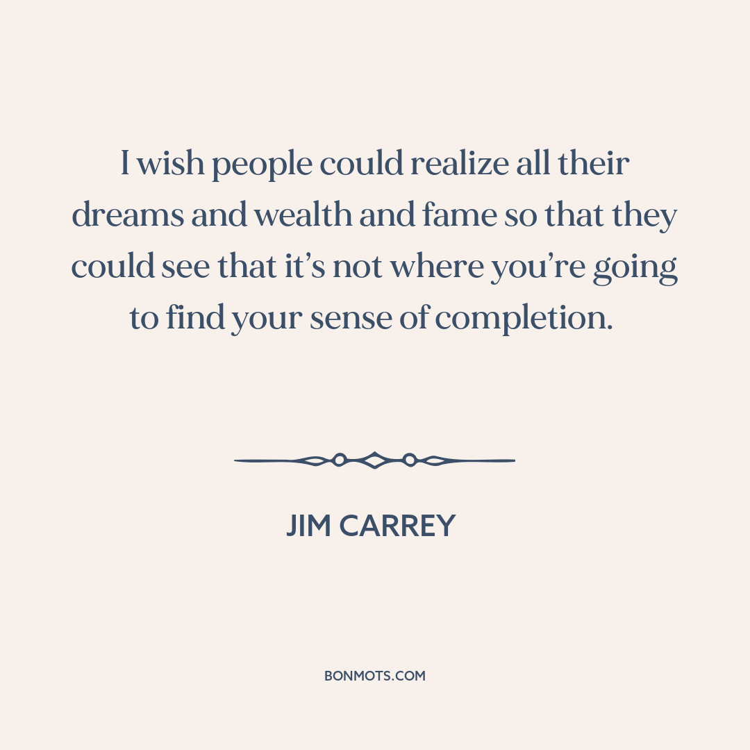 I wish people could realize all their dreams and wealth and fame so that they could see that it’s not where you’re going to find your sense of completion.