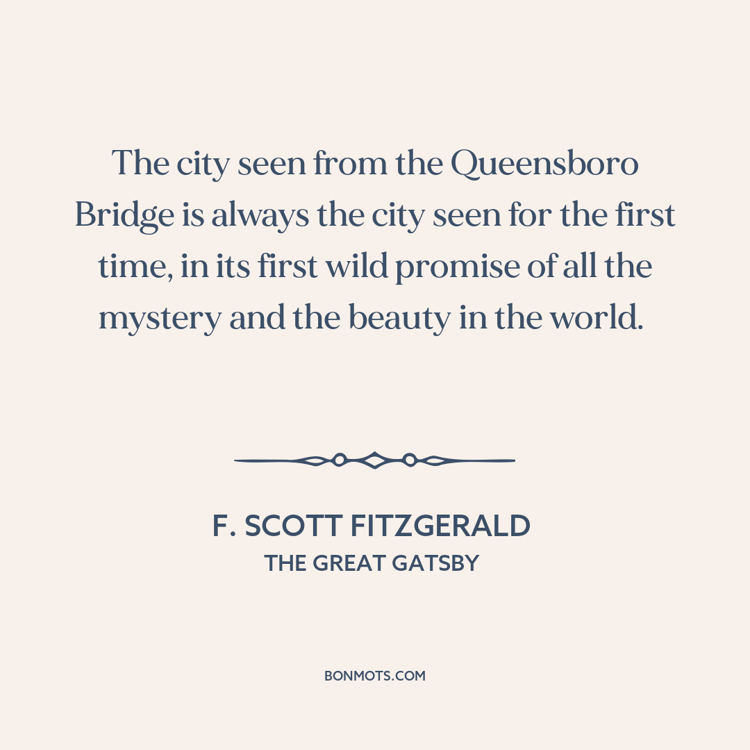 The city seen from the Queensboro Bridge is always the city seen for the first time, in its first wild promise of all the mystery and the beauty in the world.