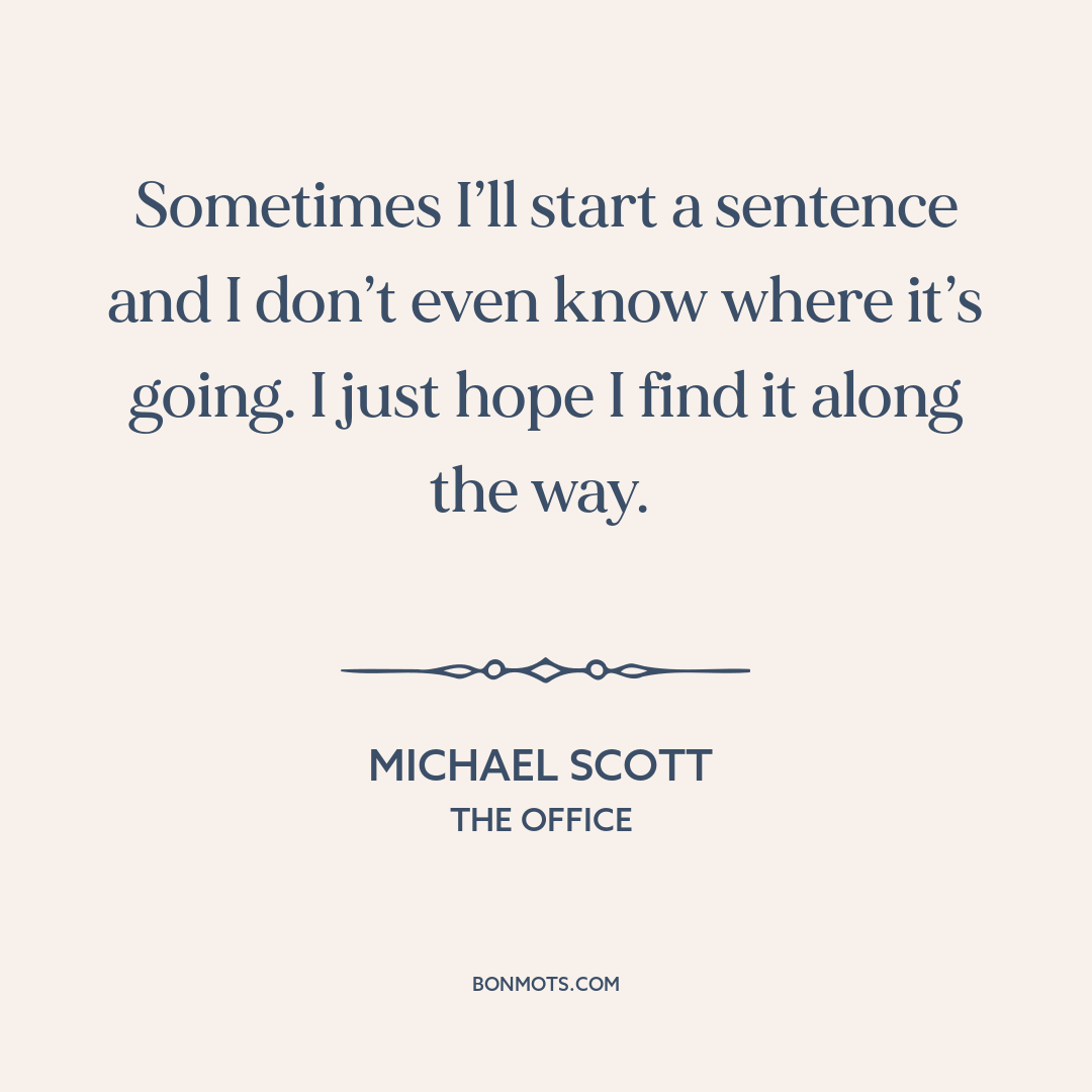 Sometimes I’ll start a sentence and I don’t even know where it’s going. I just hope I find it along the way.