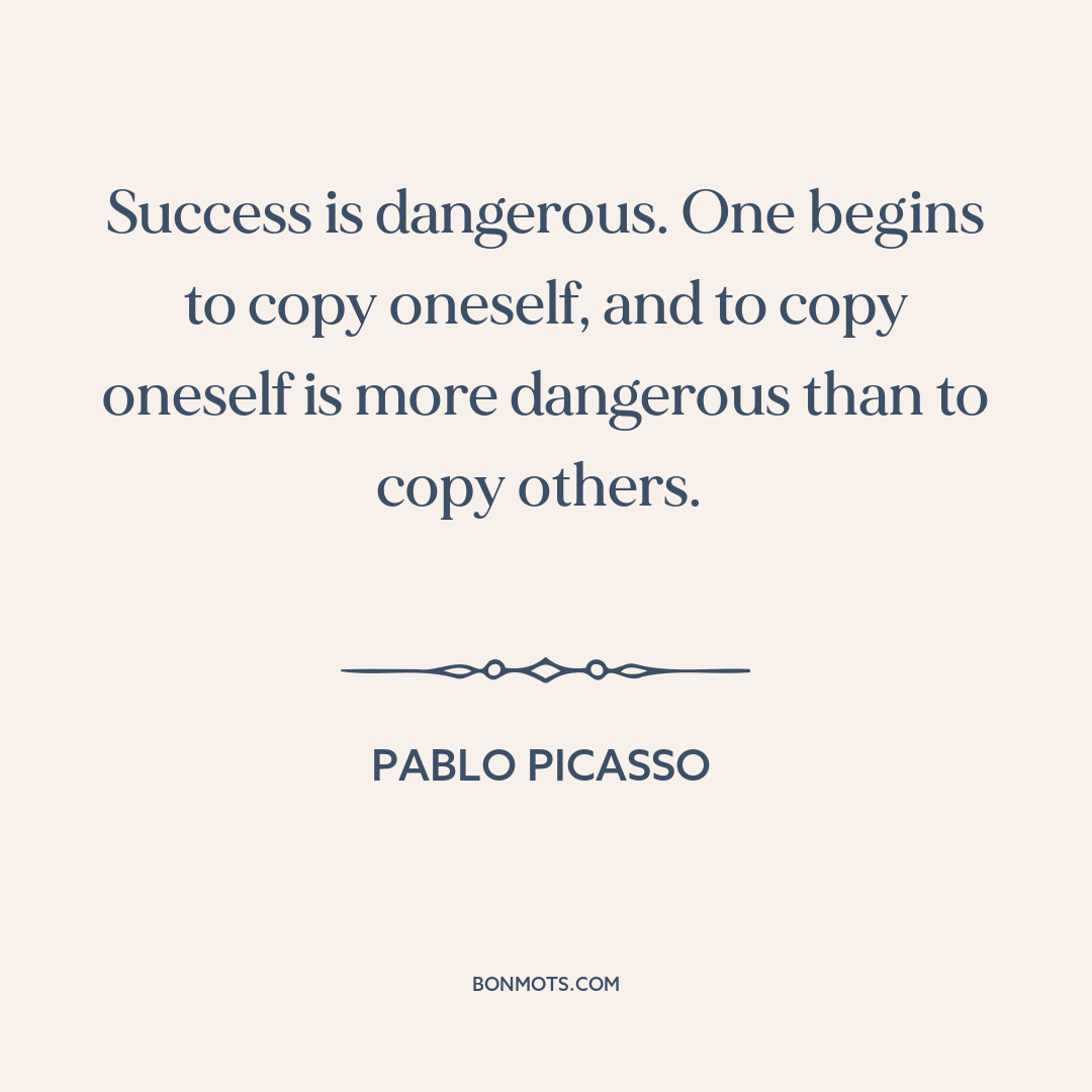 Success is dangerous. One begins to copy oneself, and to copy oneself is more dangerous than to copy others.