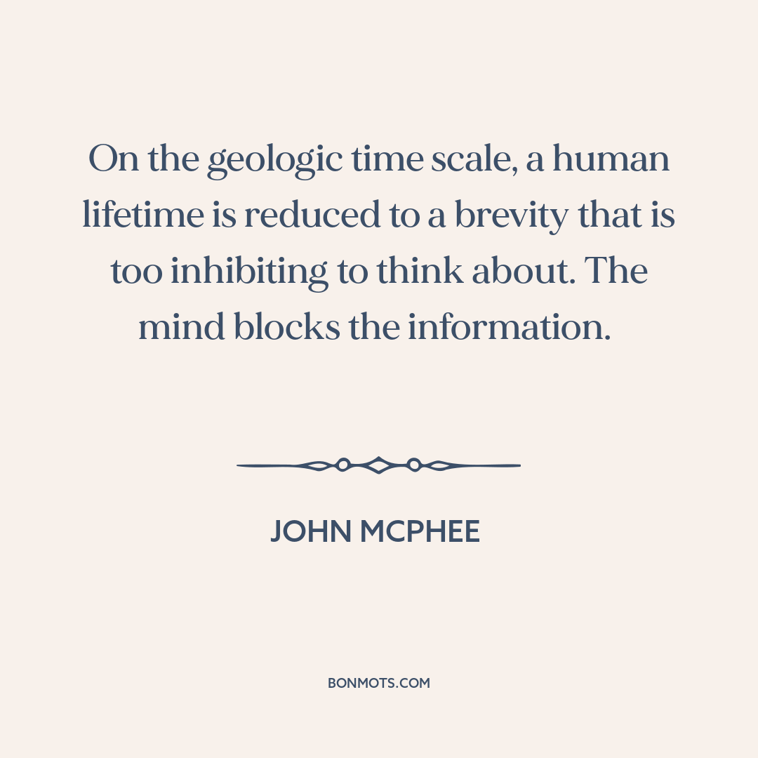 On the geologic time scale, a human lifetime is reduced to a brevity that is too inhibiting to think about. The mind blocks the information.
