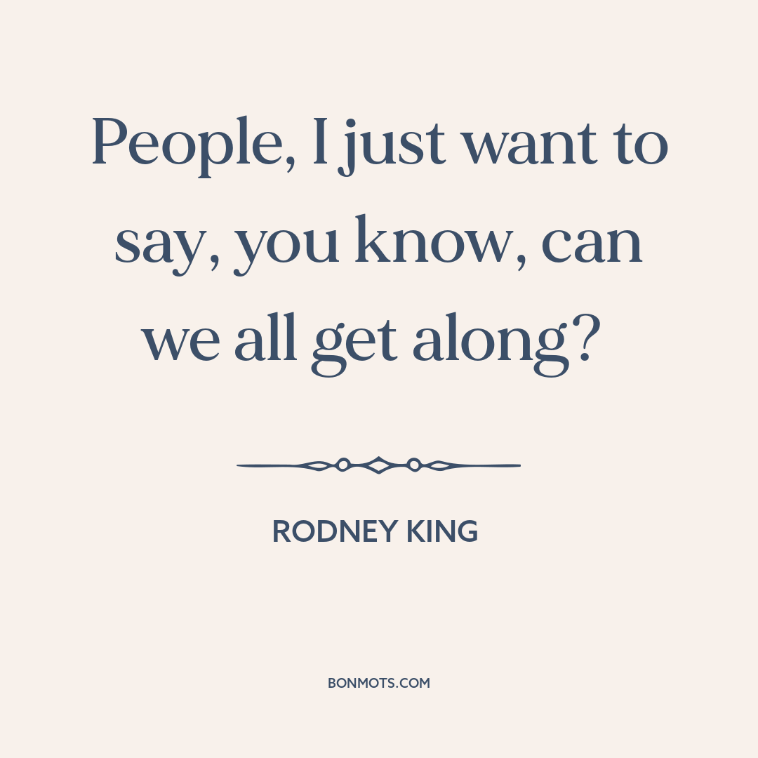 King, Rodney. Statement following Los Angeles riots. 1 May 1992, Los Angeles, CA, USA.