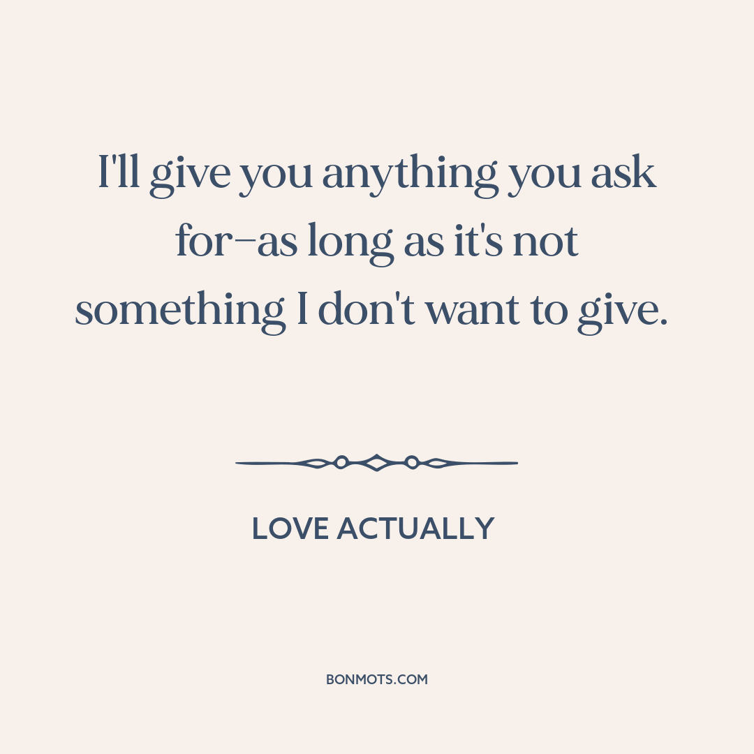 I'll give you anything you ask for—as long as it's not something I don't want to give.