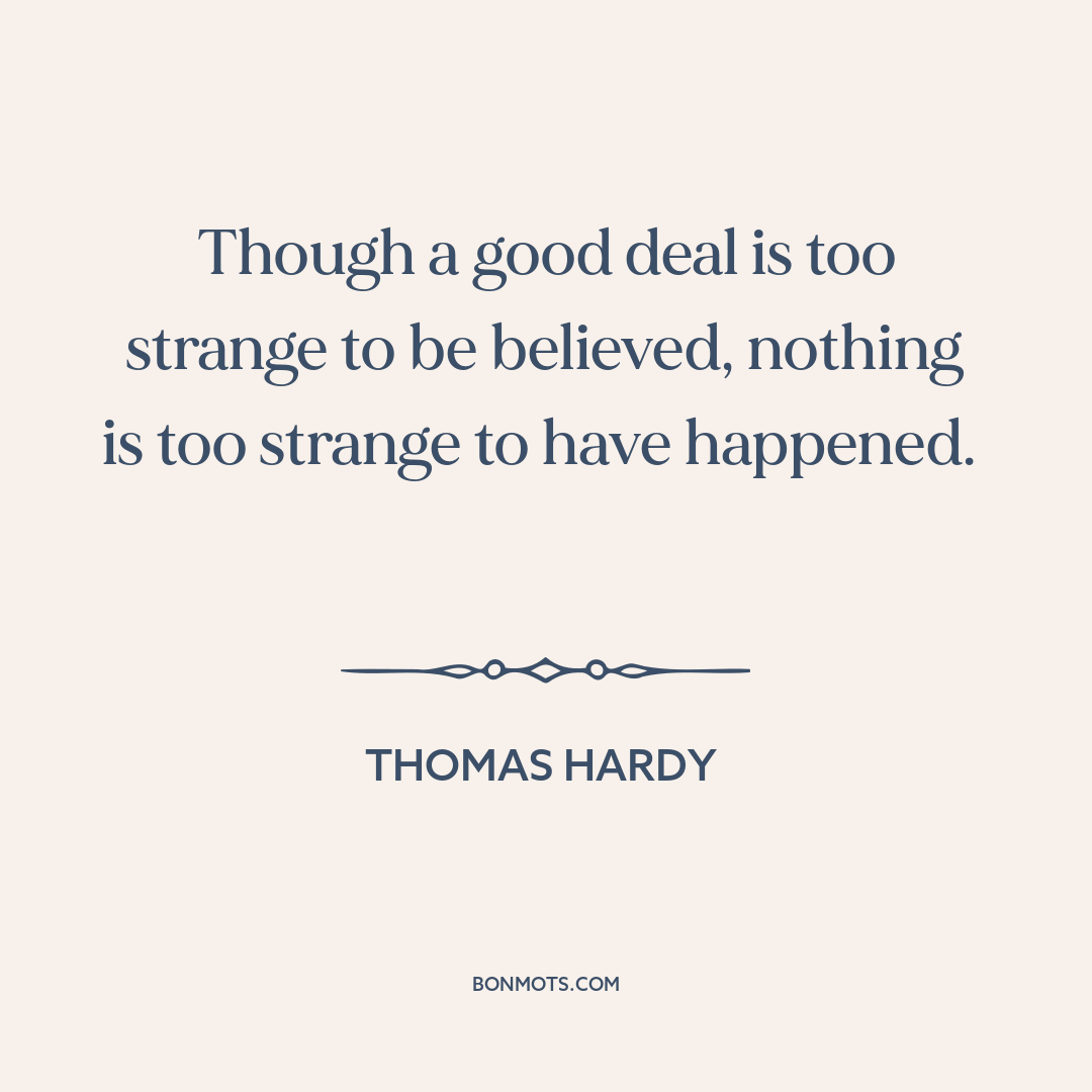 Though a good deal is too strange to be believed, nothing is too strange to have happened.