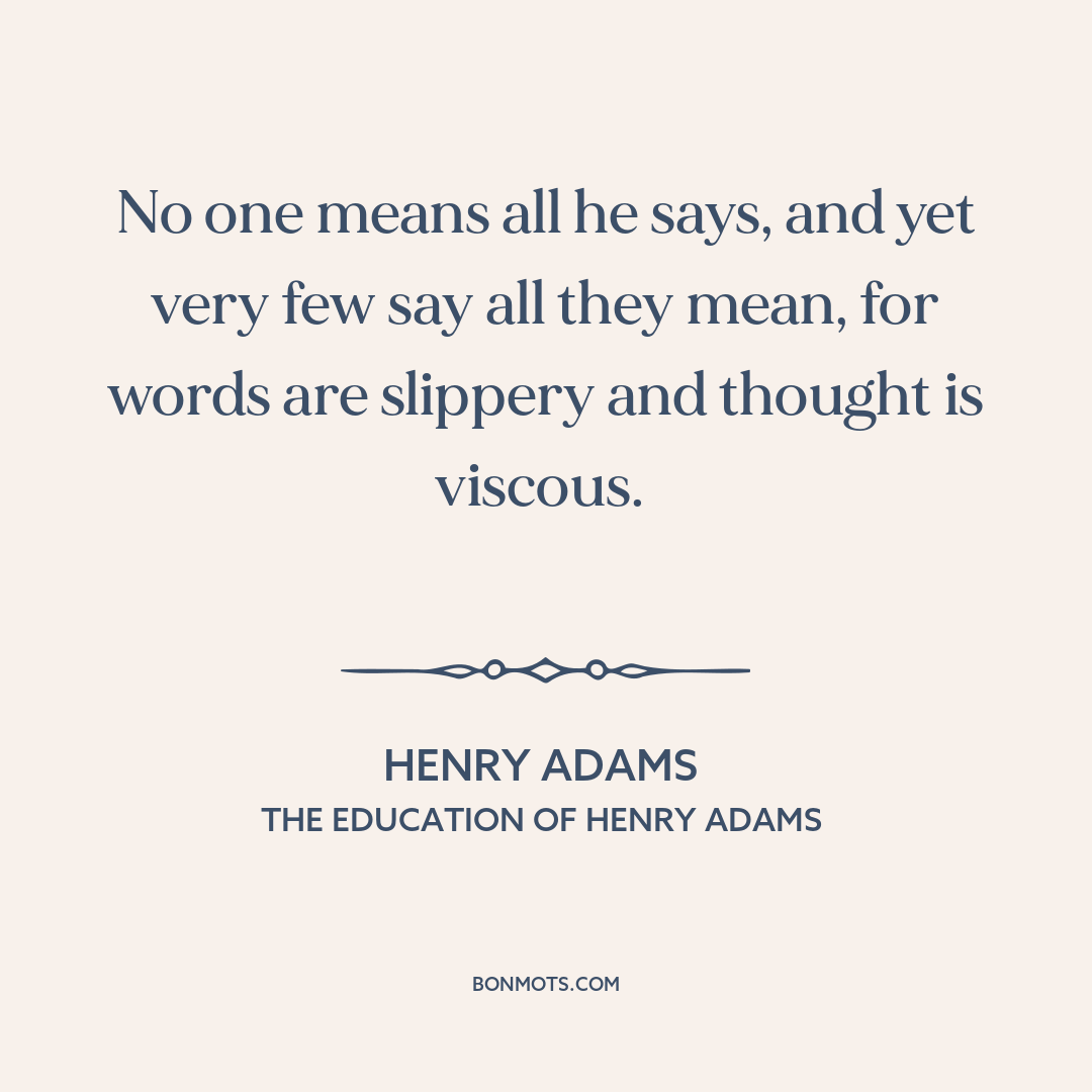 No one means all he says, and yet very few say all they mean, for words are slippery and thought is viscous.
