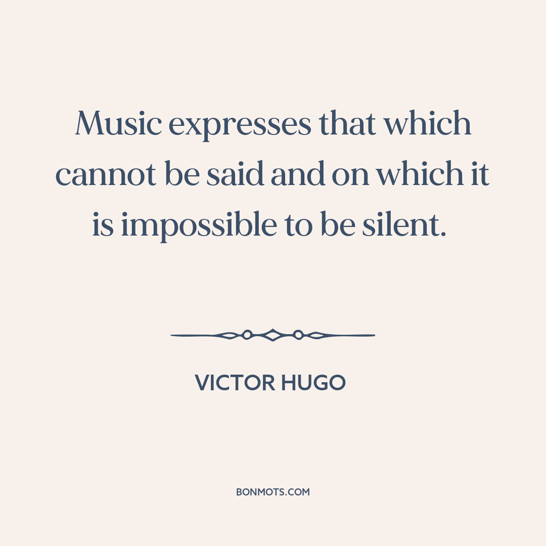 Music expresses that which cannot be said and on which it is impossible to be silent.